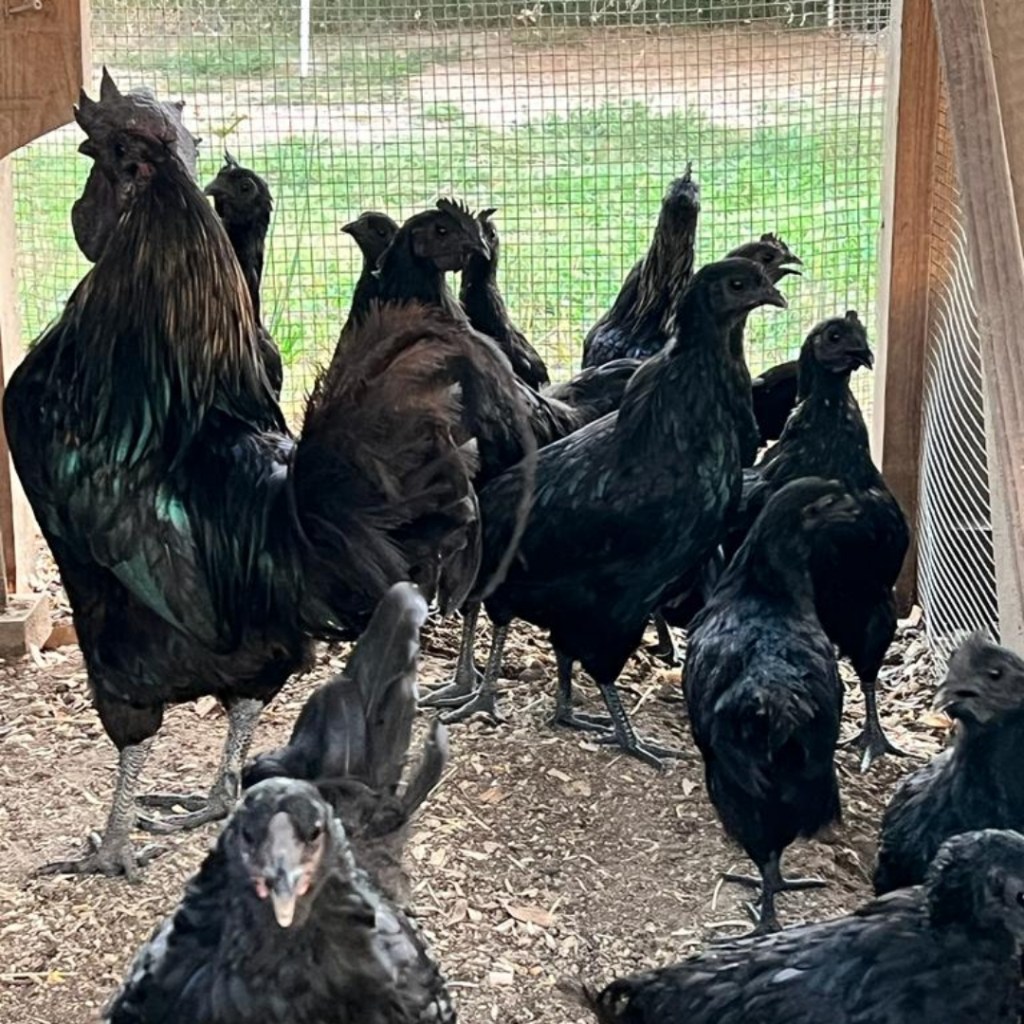 Ayam Cemani Chicken Prices: Unsexed chicks (1-7 days old) are $45; Sexed chicks are $55.00 ea.; $5 additional for each added week of life.
